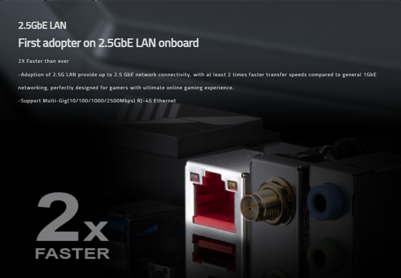 - LAN : Realtek® 2.5GbE LAN chip (2.5 Gbps/1 Gbps/100 Mbps)