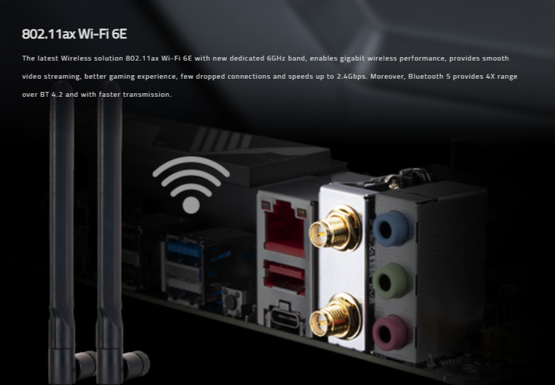 • WIFI a, b, g, n, ac, ax, supporting 2.4/5/6 GHz carrier frequency bands