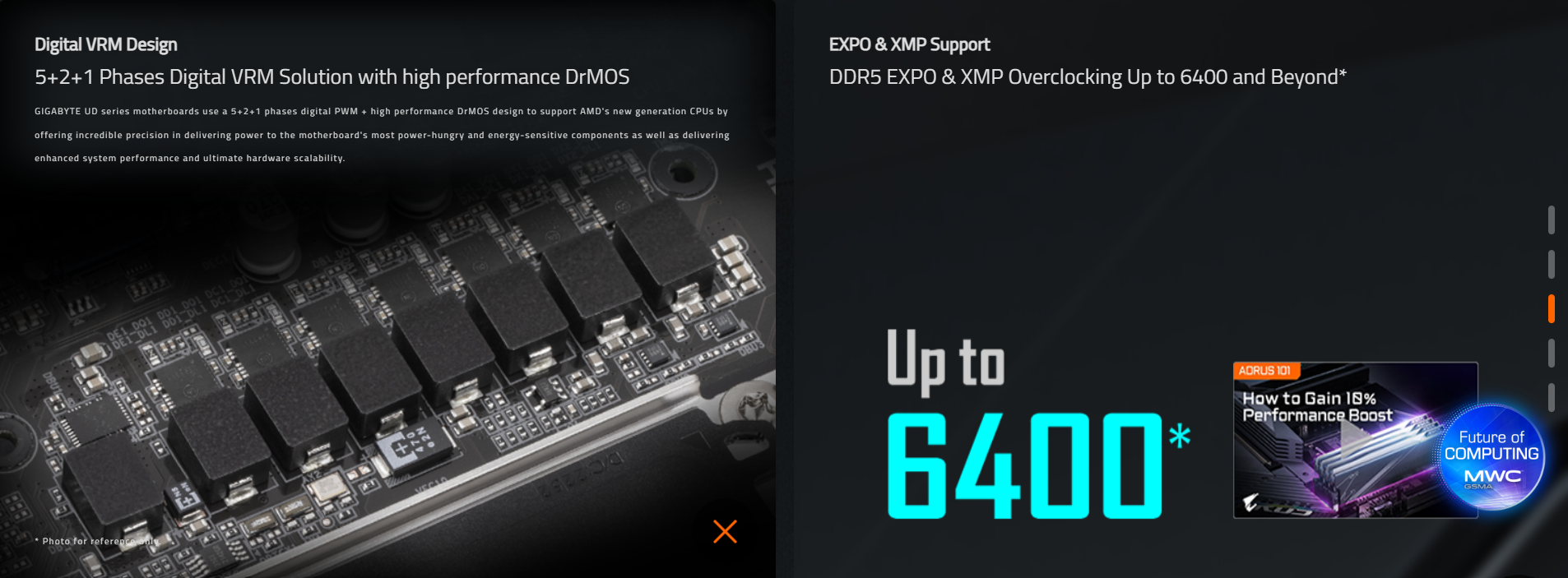 • Support for AMD Extended Profiles for Overclocking (AMD EXPO™) and Extreme Memory Profile (XMP) memory modules
