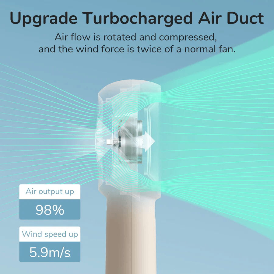 Patented Turbocharged Airflow: JISULIFE Handheld Turbo Fan has 2 vortex tech patents: Air Turbo and Air Jet. The airflow is accelerated and compressed by the air duct turbine, the wind is stronger, and the wind feels closer to nature.