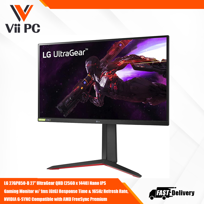 LG 27GP850-B 27” UltraGear QHD (2560 x 1440) Nano IPS Gaming Monitor w/ 1ms (GtG) Response Time & 165Hz Refresh Rate, NVIDIA G-SYNC Compatible with AMD FreeSync Premium, Tilt/Height/Pivot Adjustable