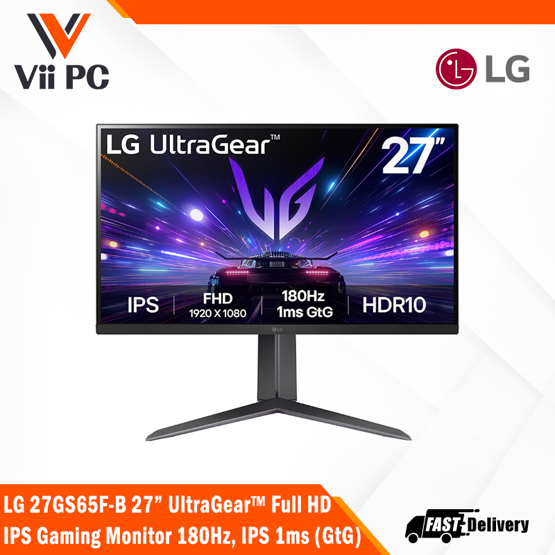 The LG 27-inch UltraGear Full HD IPS Gaming Monitor (27GS65F-B) is designed for high-performance gaming with its 180Hz refresh rate and Full HD resolution of 1920 x 1080 pixels.