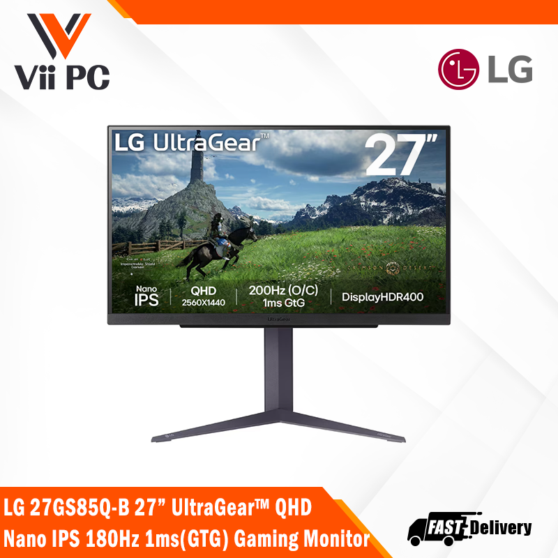 LG 27GS85Q-B 27” UltraGear QHD Nano IPS 180Hz 1ms(GTG) Gaming Monitor, DisplayHDR 400