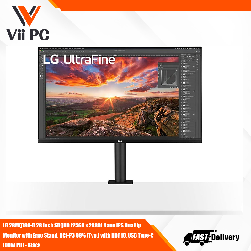 LG 28MQ780-B 28 Inch SDQHD (2560 x 2880) Nano IPS DualUp Monitor with Ergo Stand, DCI-P3 98% (Typ.) with HDR10, USB Type-C (90W PD) - Black