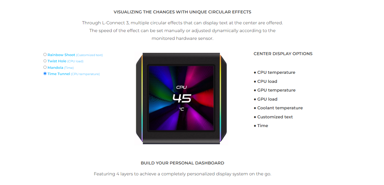 - Access unique screen effects and layer-by-layer customization through L-Connect 3