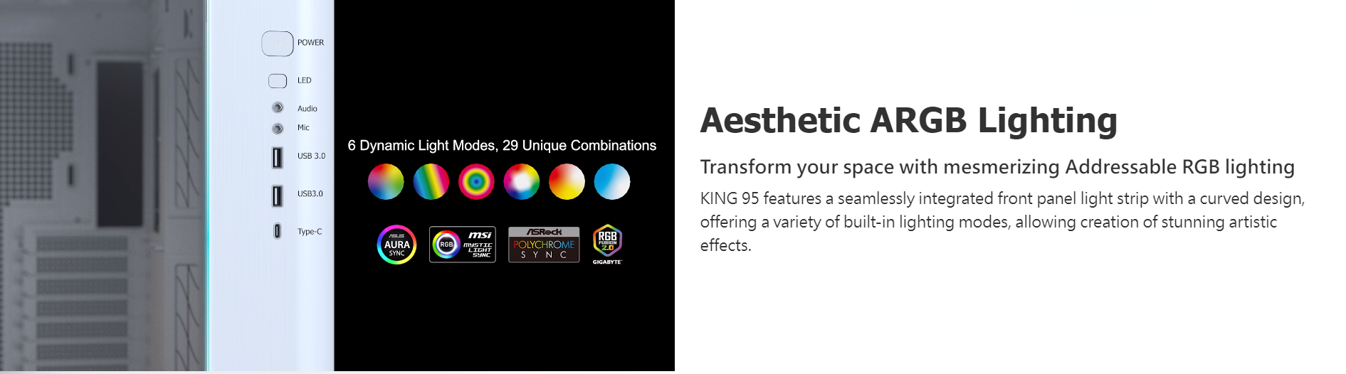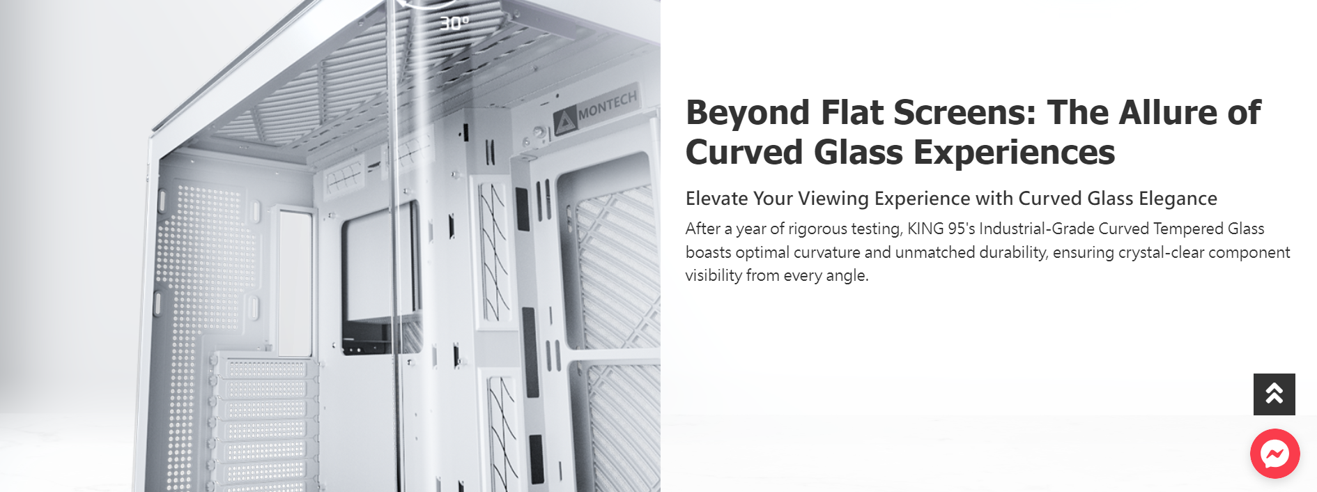 After a year of rigorous testing, KING 95's Industrial-Grade Curved Tempered Glass boasts optimal curvature and unmatched durability, ensuring crystal-clear component visibility from every angle.