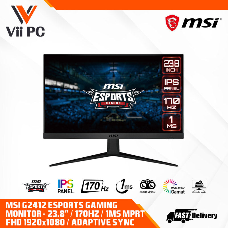 Visualize your victory with the MSI G2412 Esports gaming monitor. Equipped with a 1920x1080, 170hz Refresh rate, 1ms response time IPS panel, the G2412 will give you the competitive edge you need to take down your opponents. Built with Adaptive sync technology, the G2412 can match the display's refresh rate with your GPU for ultra-smooth gameplay. Make sure you can hit your mark with all the latest technologies built-in the MSI Esports Gaming monitors for competitive play.