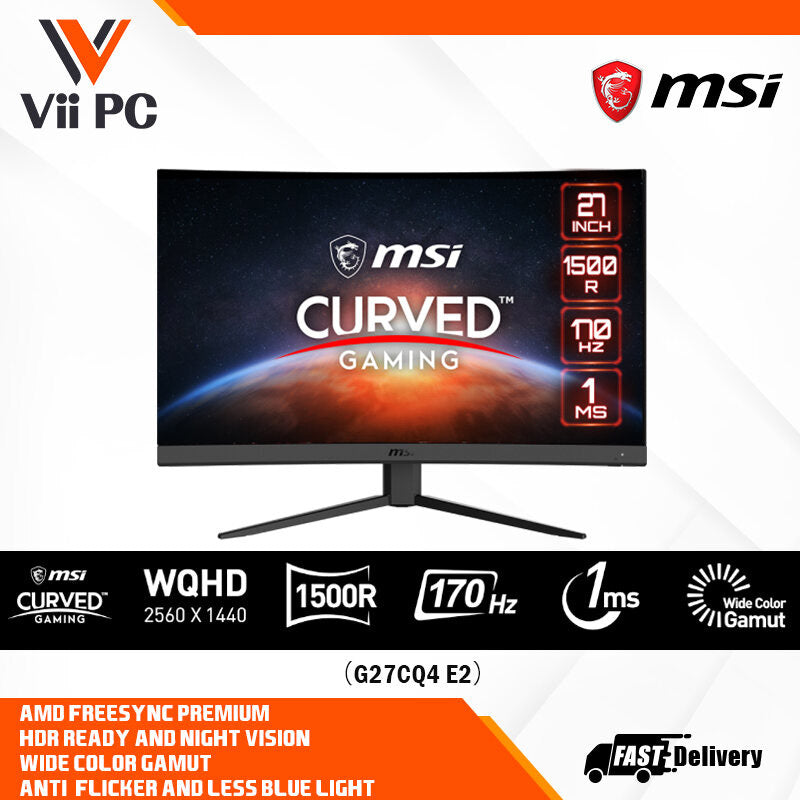 Visualize your victory with MSI G27CQ4 E2 Curved Gaming™ monitor. Equipped with a 2560x1440, 170hz Refresh rate, 1ms response time panel, G27CQ4 E2 will give you the competitive edge you need to take down your opponents. Built with adaptive sync, G27CQ4 E2 can match the display's refresh rate with your GPU for ultra-smooth gameplay. Make sure you can hit your mark with all the latest technologies built-in the MSI Curved Gaming™ monitor for competitive play.