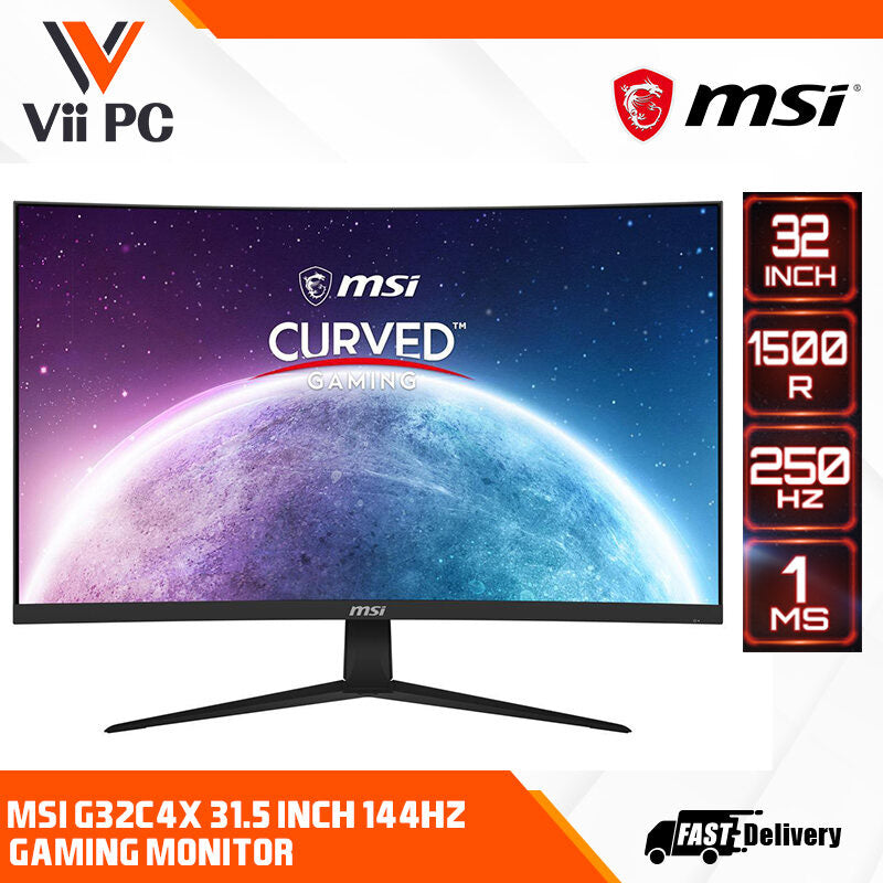 MSI G32C4X Curved Gaming Monitor - 32" FHD (1920 x 1080) 1500R, 1 ms, 250Hz, HDR, Adaptive sync, HDMI, DisplayPort, Tilt Adjustable