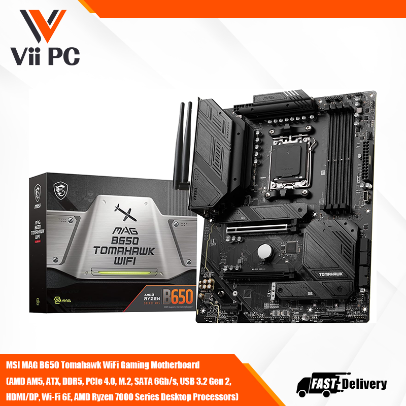 MSI MAG B650 Tomahawk WiFi Gaming Motherboard (AMD AM5, ATX, DDR5, PCIe 4.0, M.2, SATA 6Gb/s, USB 3.2 Gen 2, HDMI/DP, Wi-Fi 6E, AMD Ryzen 7000 Series Desktop Processors)