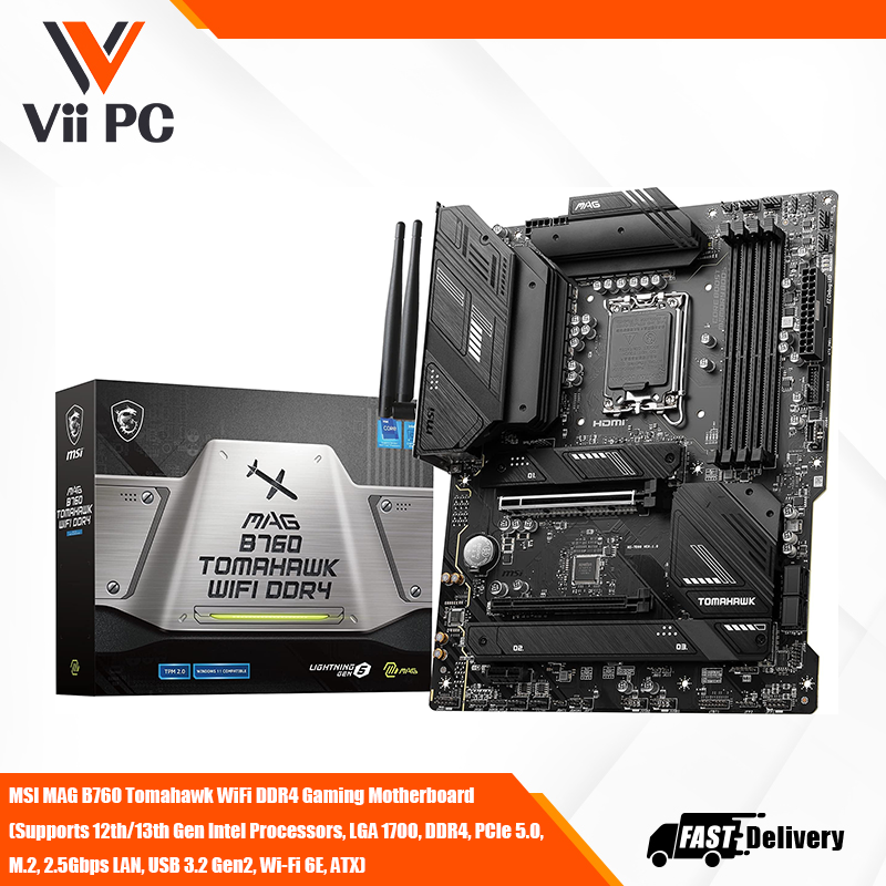 MSI MAG B760 Tomahawk WiFi DDR4 Gaming Motherboard (Supports 12th/13th Gen Intel Processors, LGA 1700, DDR4, PCIe 5.0, M.2, 2.5Gbps LAN, USB 3.2 Gen2, Wi-Fi 6E, ATX)
