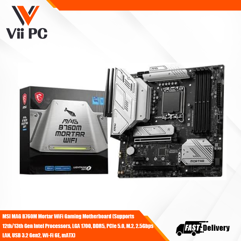 MSI MAG B760M Mortar WiFi Gaming Motherboard (Supports 12th/13th Gen Intel Processors, LGA 1700, DDR5, PCIe 5.0, M.2, 2.5Gbps LAN, USB 3.2 Gen2, Wi-Fi 6E, mATX)
