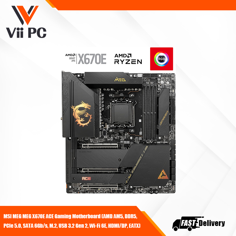MSI MEG MEG X670E ACE Gaming Motherboard (AMD AM5, DDR5, PCIe 5.0, SATA 6Gb/s, M.2, USB 3.2 Gen 2, Wi-Fi 6E, HDMI/DP, EATX)
