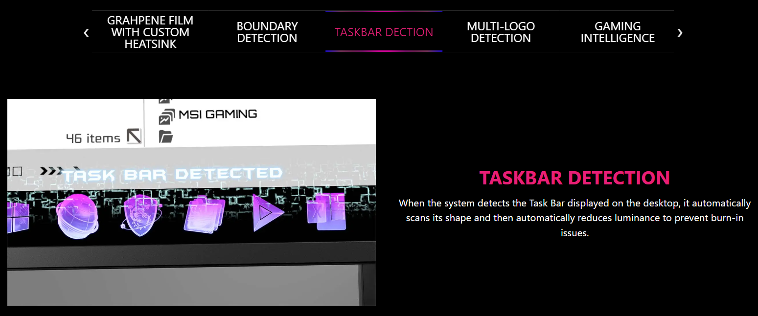 • MSI OLED Care 2.0 – Reduced the risk of OLED image sticking / burn-in.