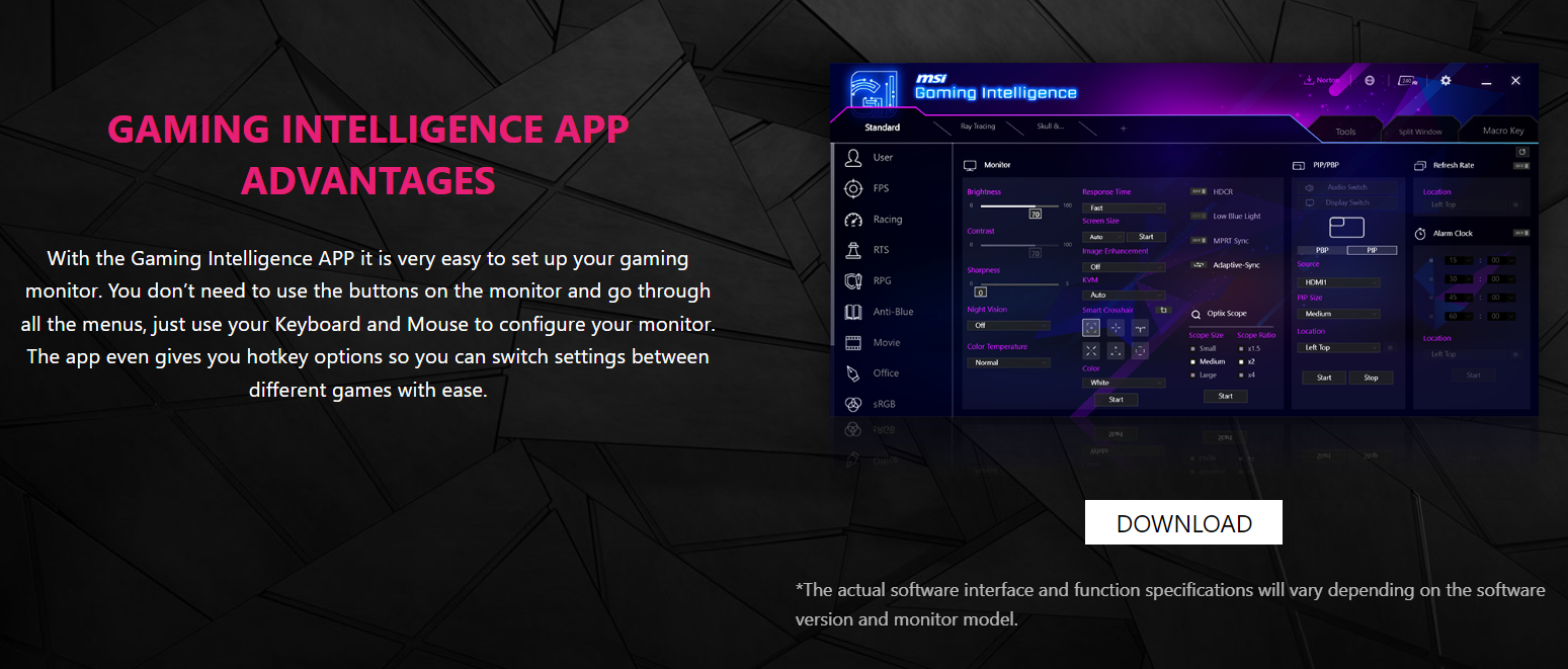 • Gaming Intelligence App – Create the perfect viewing settings for your games.