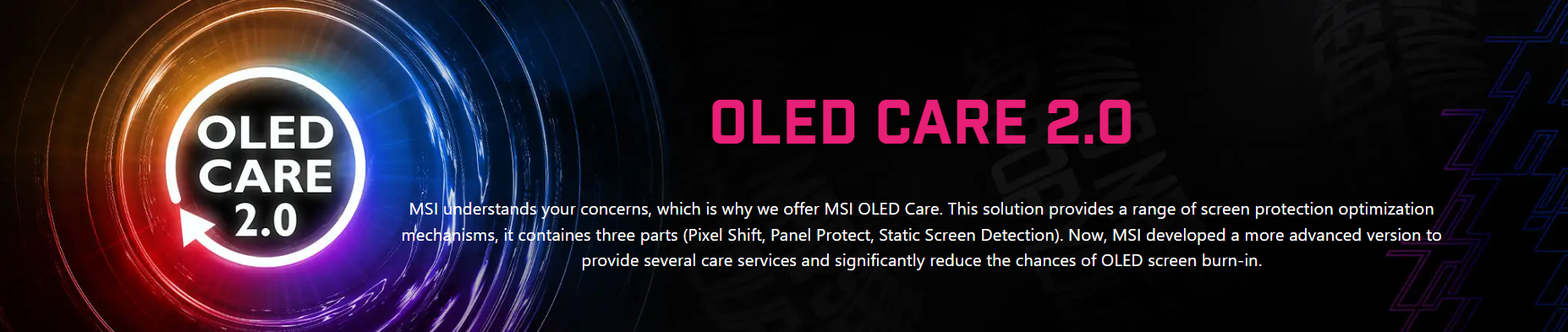 - MSI OLED Care 2.0 – Reduced the risk of OLED image sticking / burn-in.