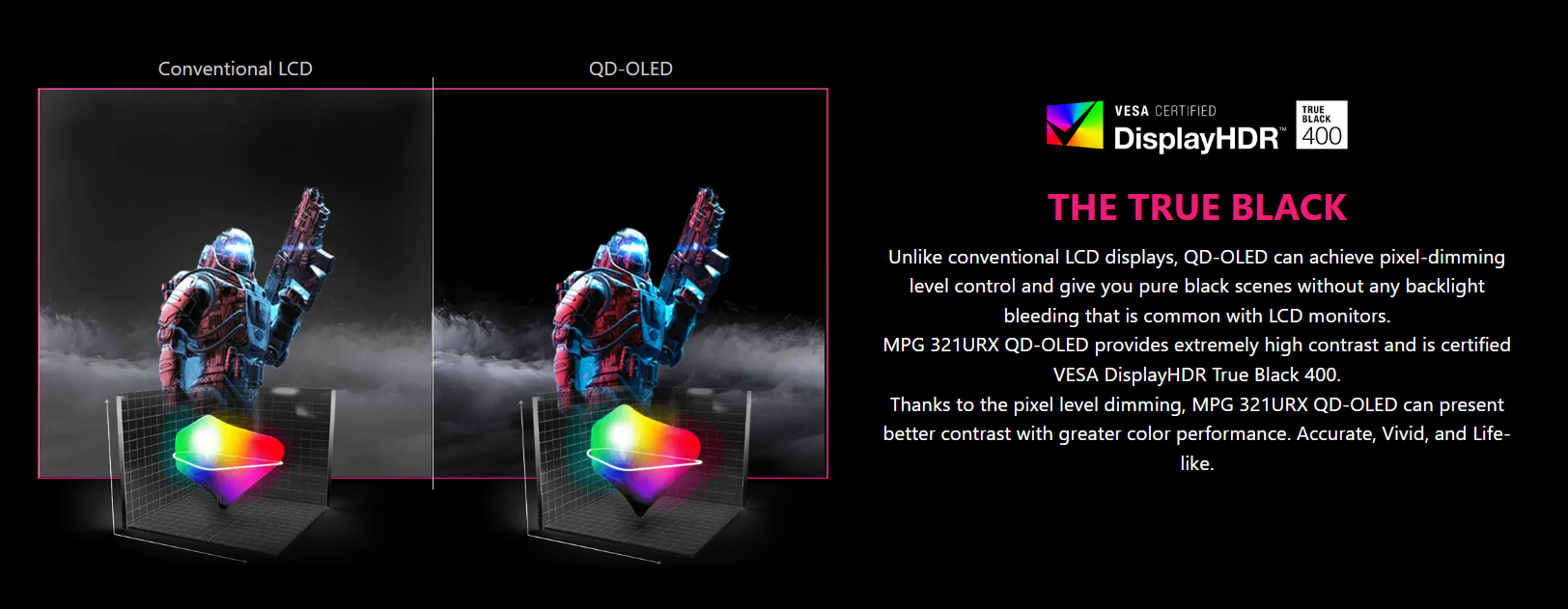 - Incredible HDR visual – VESA DisplayHDR True Black 400.