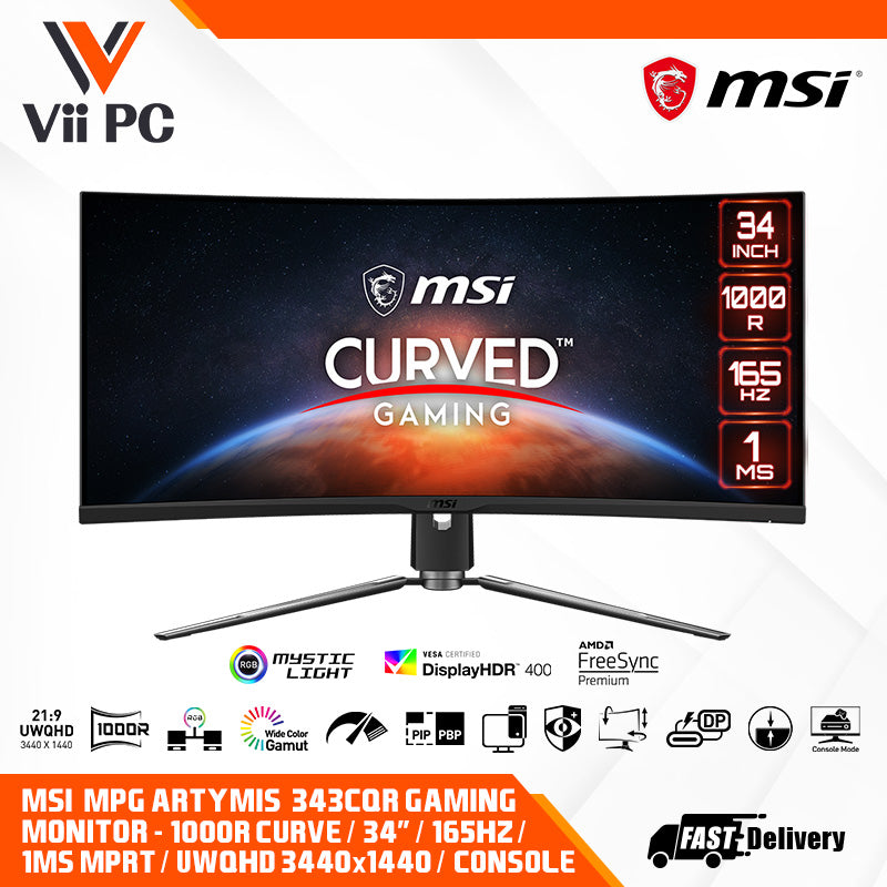 MSI MPG ARTYMIS 343CQR Gaming Monitor - 34" 3440 x 1440 (UWQHD), VA, 165Hz, FreeSync Premium, HDR 400, HDMI, DisplayPort, USB C, Tilt, Swivel, Height Adjustable (Black)