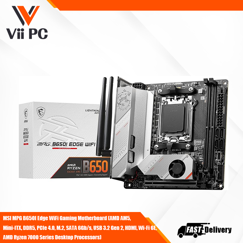 MSI MPG B650I Edge WiFi Gaming Motherboard (AMD AM5, Mini-ITX, DDR5, PCIe 4.0, M.2, SATA 6Gb/s, USB 3.2 Gen 2, HDMI, Wi-Fi 6E, AMD Ryzen 7000 Series Desktop Processors)