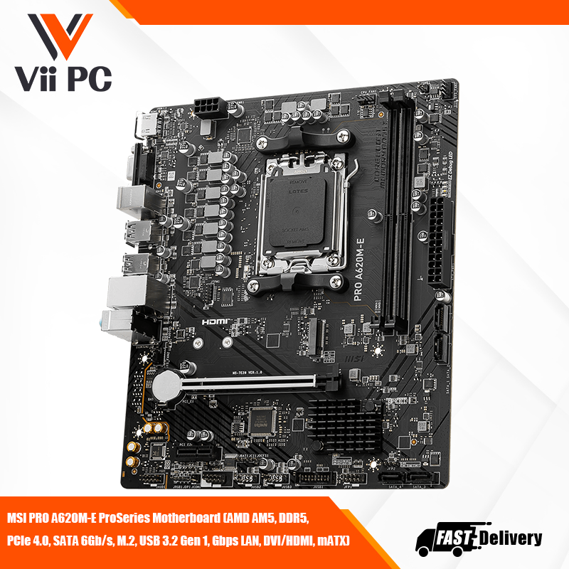 MSI PRO A620M-E ProSeries Motherboard (AMD AM5, DDR5, PCIe 4.0, SATA 6Gb/s, M.2, USB 3.2 Gen 1, Gbps LAN, DVI/HDMI, mATX)
