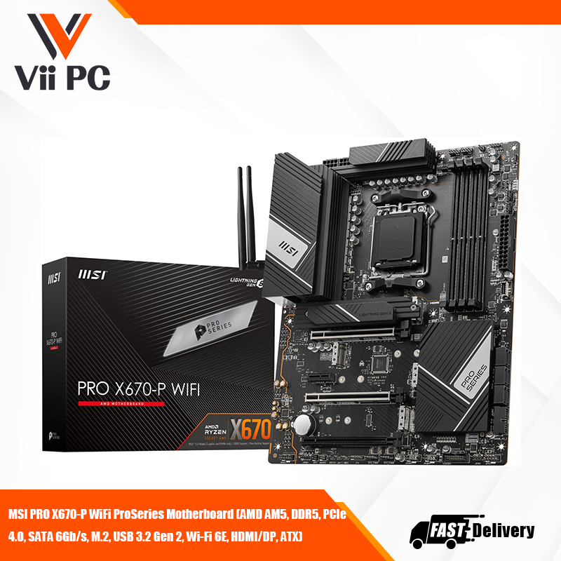 MSI PRO X670-P WiFi ProSeries Motherboard (AMD AM5, DDR5, PCIe 4.0, SATA 6Gb/s, M.2, USB 3.2 Gen 2, Wi-Fi 6E, HDMI/DP, ATX)
