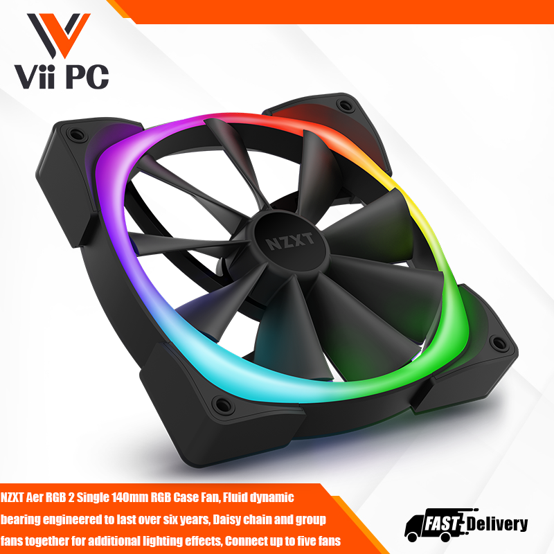 NZXT Aer RGB 2 Single 140mm RGB Case Fan - Fluid dynamic bearing engineered to last over six years, Daisy chain and group fans together for additional lighting effects, Connect up to five fans per channel