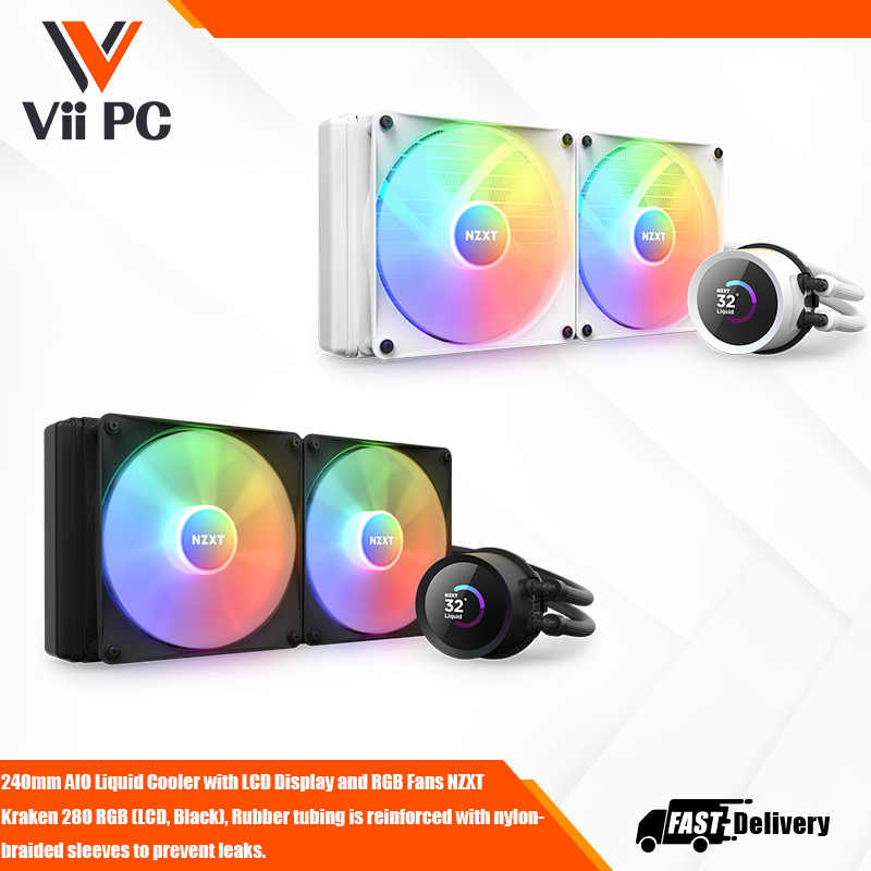 NZXT Kraken 280 RGB (LCD, Black), Rubber tubing is reinforced with nylon-braided sleeves to prevent leaks, Single breakout cable simplifies installation