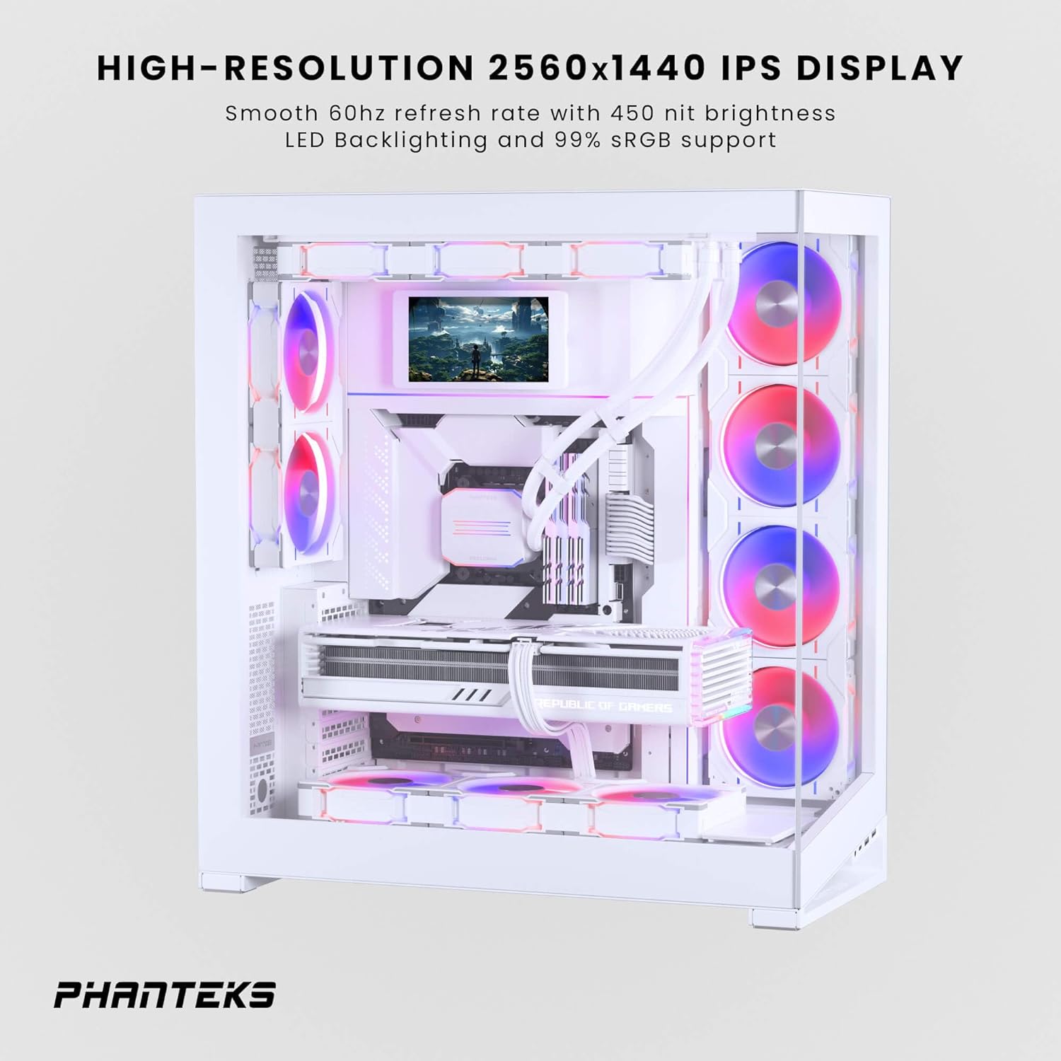 The Phanteks 5.5” Hi-Res Display offers a functional and eye-catching element to any PC setup. The 5.5-inch screen size with a high resolution of 2160x1440 pixels is the ultimate second screen inside your PC.