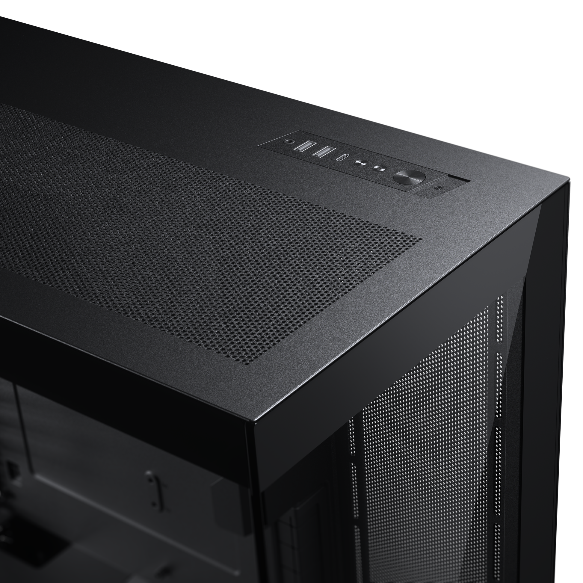 Meet the NV5 mid-tower chassis, featuring a stunning near-seamless glass view and support for 8 x 120 mm fans and dedicated space for a 360 radiator in the top and side for optimal cooling. With a dedicated bottom fan for enhanced GPU cooling and spacious interior to accommodate modern GPUs and cables, the NV5 is designed to excel.