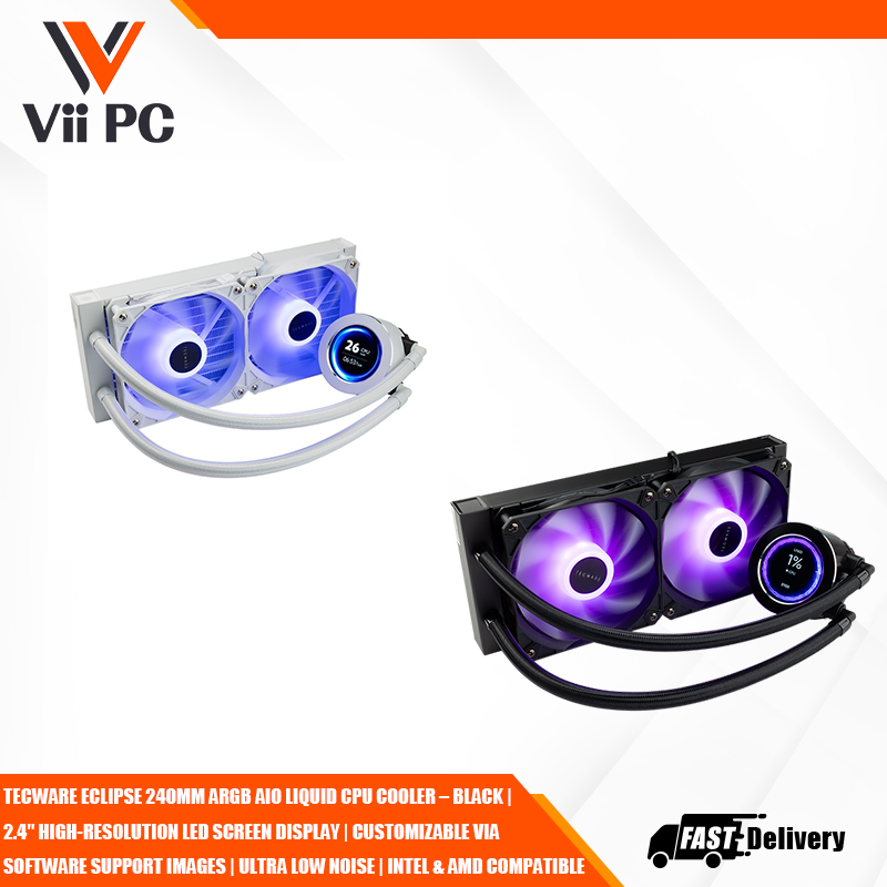 TECWARE ECLIPSE 240MM ARGB AIO LIQUID CPU COOLER – BLACK | 2.4″ HIGH-RESOLUTION LED SCREEN DISPLAY | CUSTOMIZABLE VIA SOFTWARE SUPPORT IMAGES | ULTRA LOW NOISE | INTEL & AMD COMPATIBLE