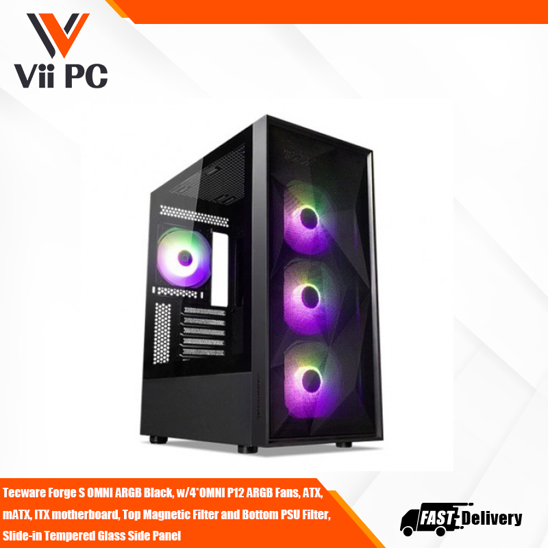 TECWARE Forge S OMNI ARGB Black, w/4*OMNI P12 ARGB Fans, ATX, mATX, ITX motherboard, Top Magnetic Filter and Bottom PSU Filter, Slide-in Tempered Glass Side Panel