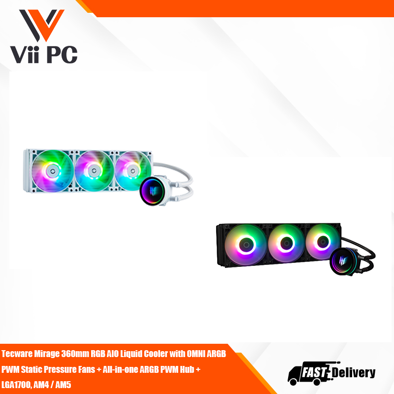 TECWARE Mirage 360mm RGB AIO Liquid Cooler with OMNI ARGB PWM Static Pressure Fans + All-in-one ARGB PWM Hub + LGA1700, AM4 / AM5