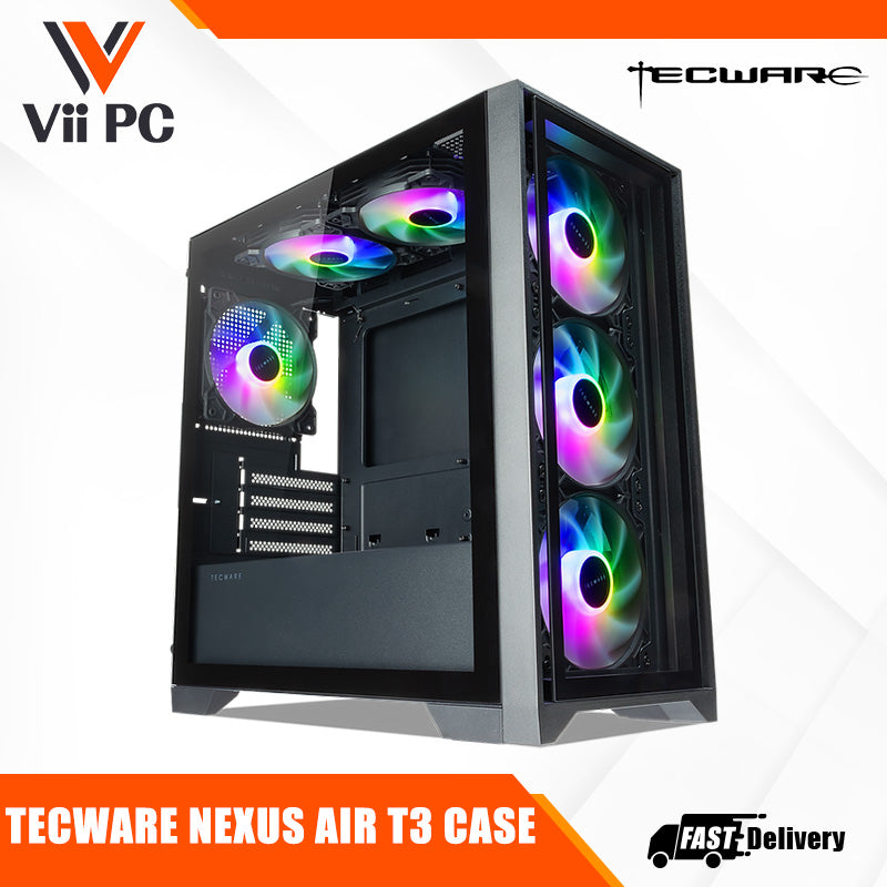TECWARE Nexus Air T3 Compact MATX Tempered Glass Case (Black) - Pre-installed with 6x12cm ARGB Fans