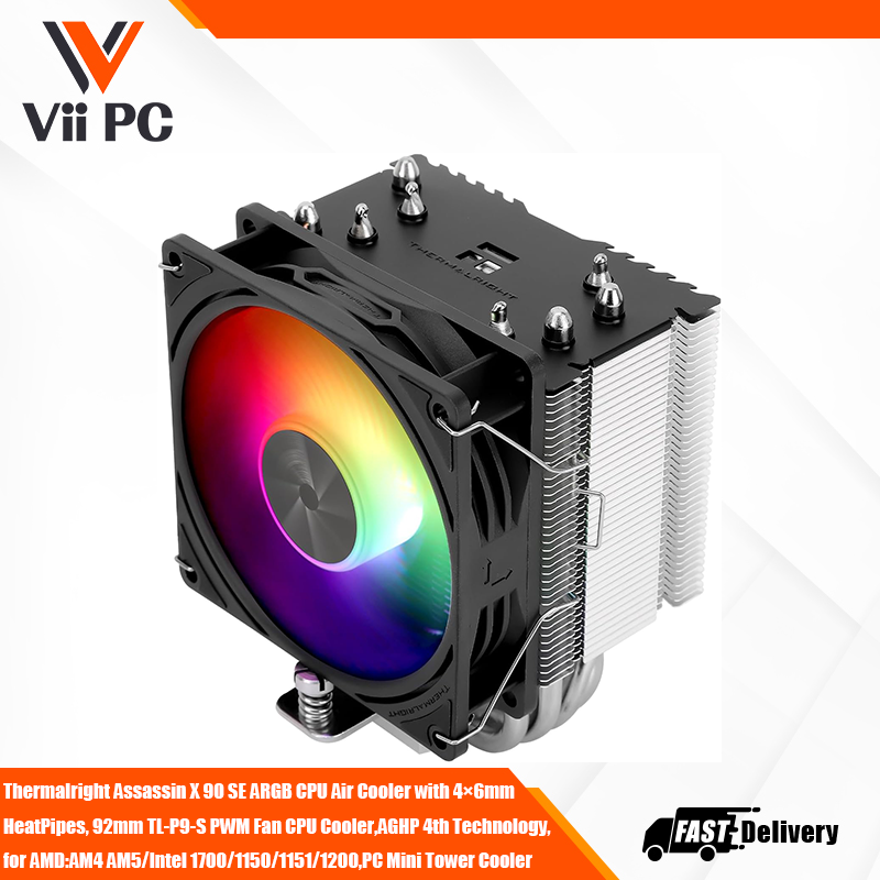 Thermalright Assassin X 90 SE ARGB CPU Air Cooler with 4×6mm HeatPipes, 92mm TL-P9-S PWM Fan CPU Cooler,AGHP 4th Technology, for AMD:AM4 AM5/Intel 1700/1150/1151/1200,PC Mini Tower Cooler