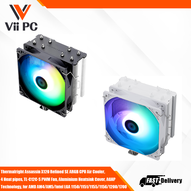 Thermalright Assassin X120 Refined SE ARGB CPU Air Cooler (Black/White) - Single tower design with 4 heat pipes, 120mm fan, AGHP Technology, Socket supported AMD and Intel