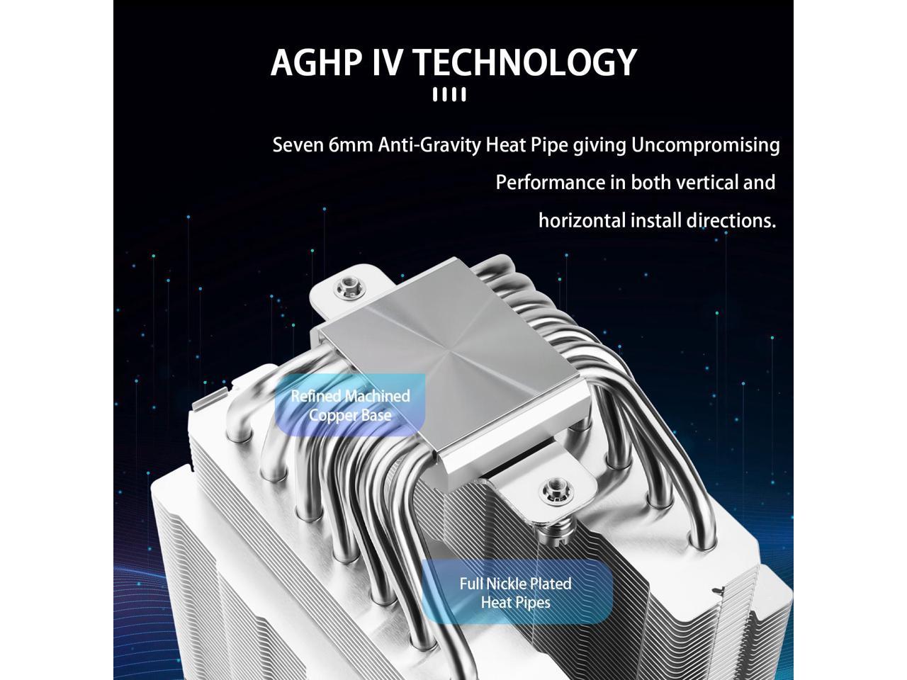 7x6mm heatpipe with AGHP upgraded 4th generation technology, the Inverse gravity effect caused by vertical/horizontal orientation, CPU cooler TDP is 105W to 280W
