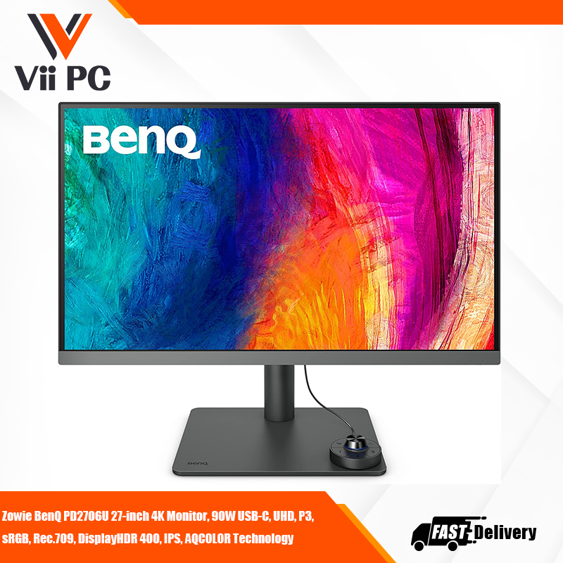 BenQ DesignVue Monitor PD2706U 27-inch 4K Monitor, 90W USB-C, UHD, P3, sRGB, Rec.709, DisplayHDR 400, IPS, AQCOLOR Technology