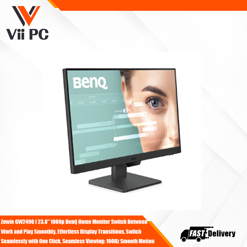 BenQ Home Monitor GW2490 I 23.8" 1080p BenQ Home Monitor Switch Between Work and Play Smoothly, Effortless Display Transitions, Switch Seamlessly with One Click, Seamless Viewing: 100Hz Smooth Motion, VESA Certified MediaSync Guarantees